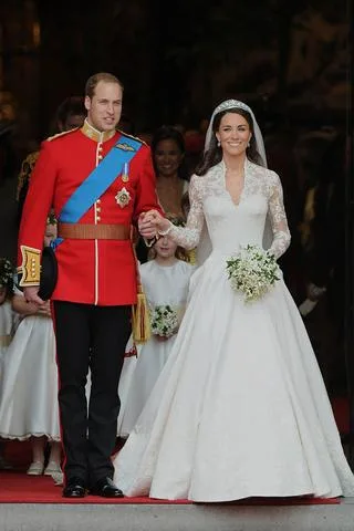 Salah satu gaun pengantin paling ikonik ini, memuat elemen tradisional dan simbol kenegaraan. Teknik bordir Irlandia dan struktur ala korset Victoria, mencerminkan akar sejarah serta aristokrasi Inggris. Pemilihan McQueen, juga sebagai penghormatan pada desainer Inggris legendaris.